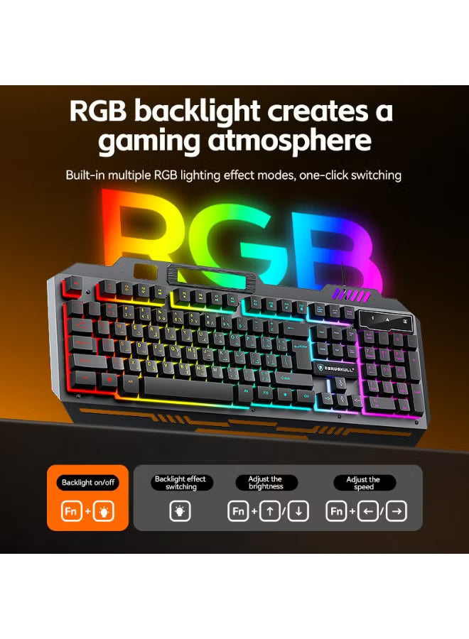 Gaming Keyboard Mouse Headset and Mousepad Combo, RGB LED Backlit Gaming Keyboard Bundle, USB Wired Keyboards Combo for PC Gamer, Xbox, PS5 Users