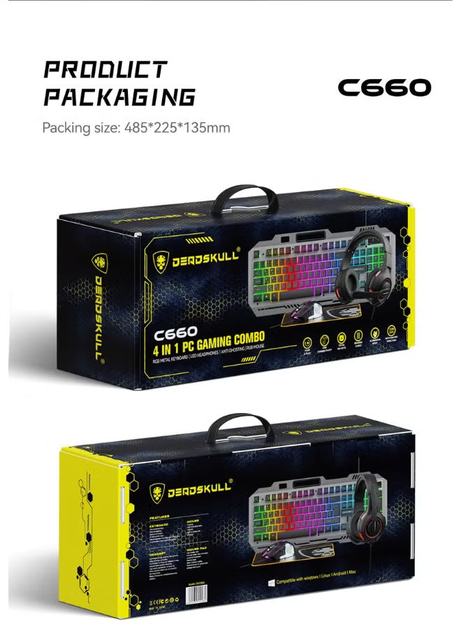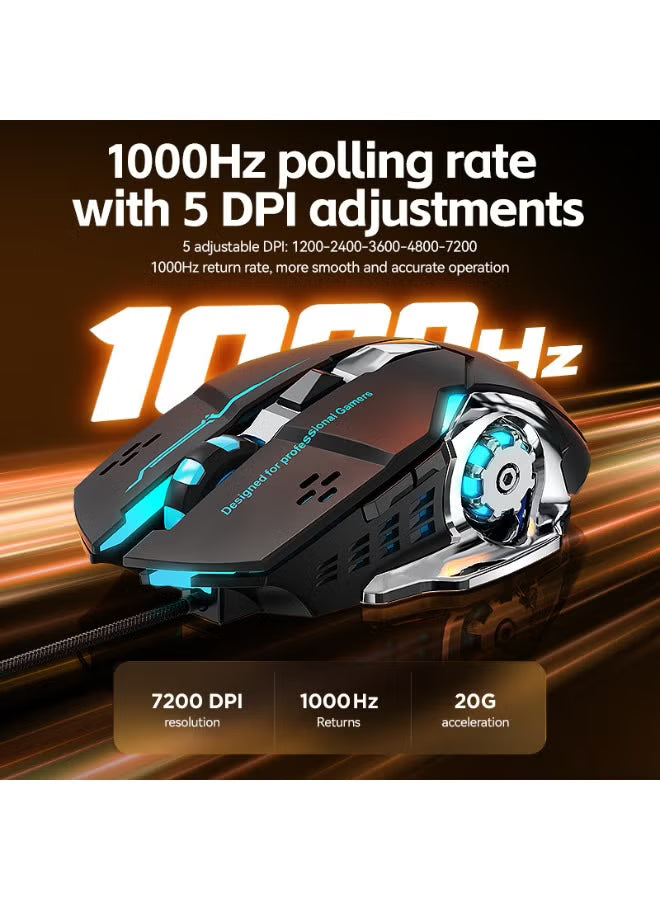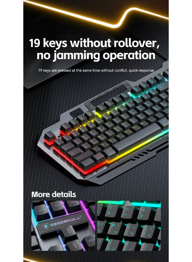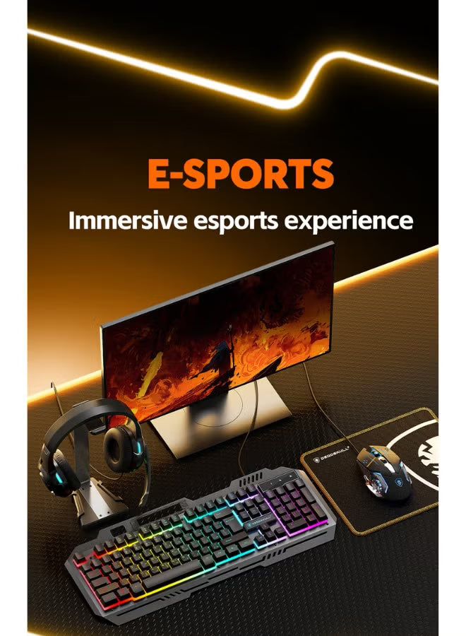Gaming Keyboard Mouse Headset and Mousepad Combo, RGB LED Backlit Gaming Keyboard Bundle, USB Wired Keyboards Combo for PC Gamer, Xbox, PS5 Users