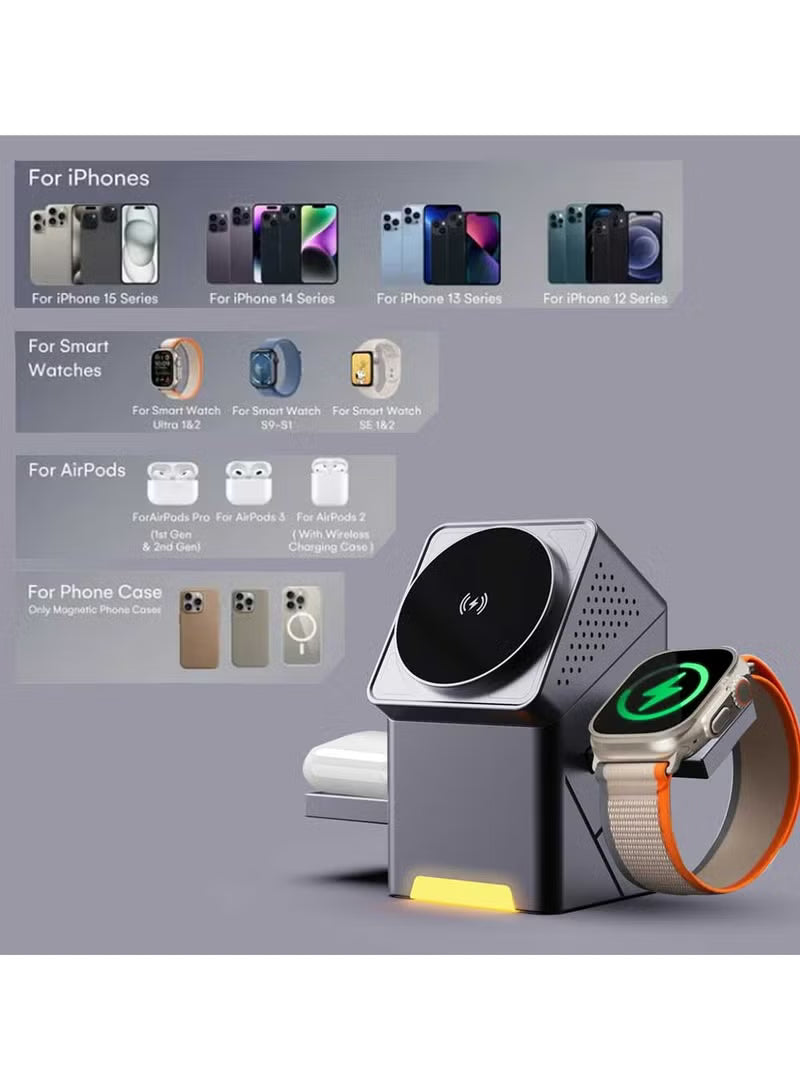 New Generation 3-in-1 Magnetic Pop-up Design Wireless Charger | High-tech Auto Rotation Charging Station | 15W Fast Charging Compatible with iPhone, Watch, and Earbuds